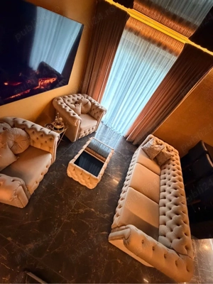 Vând set de canapea extensibila cu fotolii si masuta