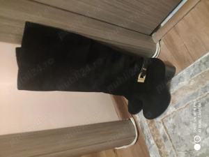 Vând perechea de cizme negre de dama din piele întoarsă , elegante , cu toc de 4 cm , înalte .